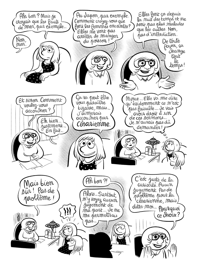 Bravo Laurel, les planches sont toujours passionnantes à lire. Votre "Ob-gyn" a-t-elle proposé une ligature des trompes après le 2eme enfant (comme cela a été pour nous) ? :)