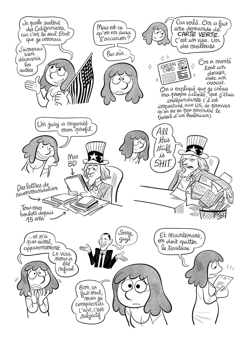 [j'y connais rien mais j'y vais de mon avis] Je ne pense pas que le jury ait eu une quelconque analyse artistique du travail de Laurel, ne dise "on aime ou pas". Ils chercheraient plutôt des ingénieurs (comme Adrien) ou des ouvriers très qualifiés, un artiste "ça ne rapporte pas de productivité au pays". De plus si le travail présenté était en Français, alors il n'était pas destiné à la population locale (même si Laurel faisait des missions pour Docker au final) donc la personne n'a pas d'apport intellectuel pour le pays. Puis un artiste, 95% du temps, ça ne rapporte pas grand chose et ça ne vit pas de son art. Donc à moins de s'appeler Hergé ...