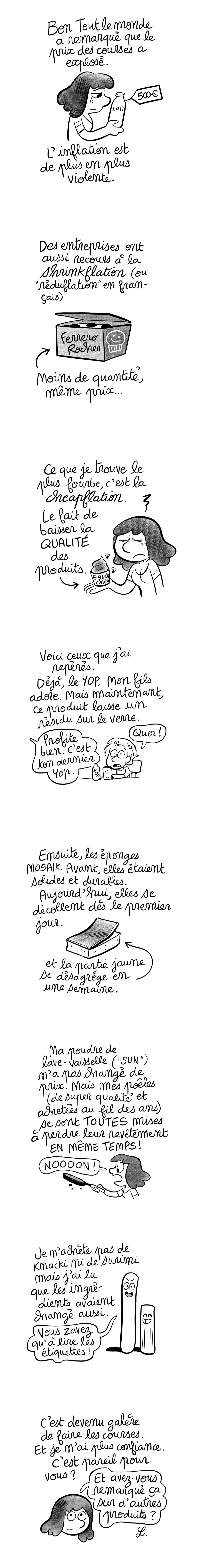même constat sur les éponges, le produit vaisselle et les yaourts laitière. je me disais que c'était moi mais en fait non... édifiant.