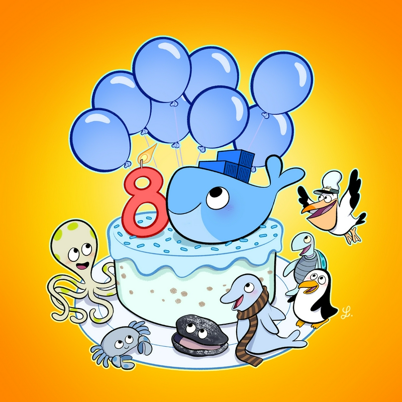 Une illustration pour les 8 ans de Docker : 🐋