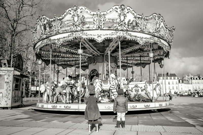 Une photo des loulous devant un magnifique manège :
