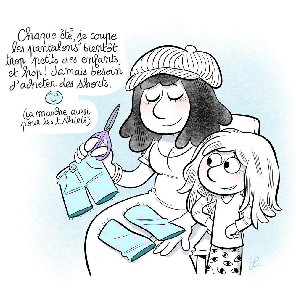 Perso je ne fais ça que quand ils sont troués aux genoux... Et encore , pas tous : mes enfants sont des grands troueurs de pantalons 😅 y aurait trop de shorts