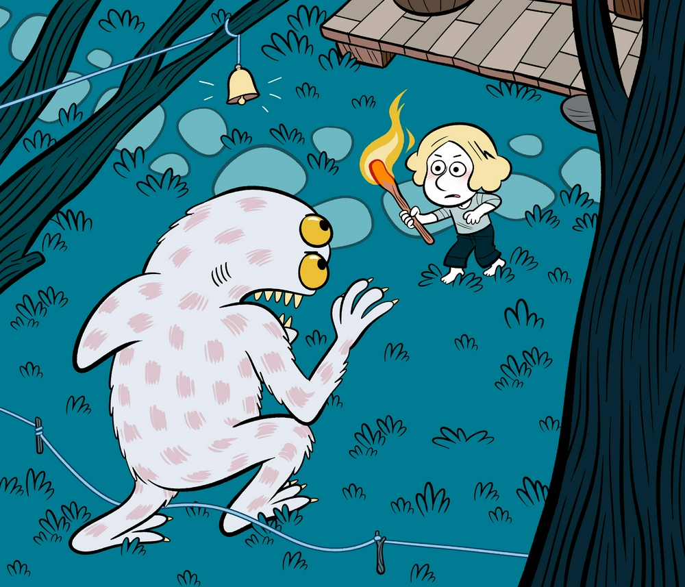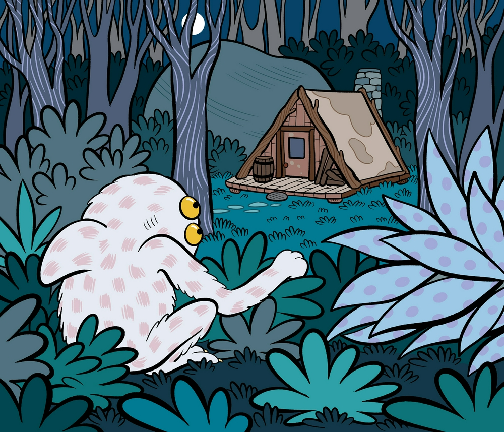 Oh, zut, j'étais déjà embarquée dans l'histoire, moi...le monstre qui a l'air crô méchant, je suis sûre qu'en fait, c'était un petit cœur tendre à rassurer. Et puis, je voudrais bien vivre dans cette cabane à côté du gros rocher (on ne le voit pas, mais on peut grimper dessus, par derrière...). Bref, je trouve ça super mignon comme début.;-)