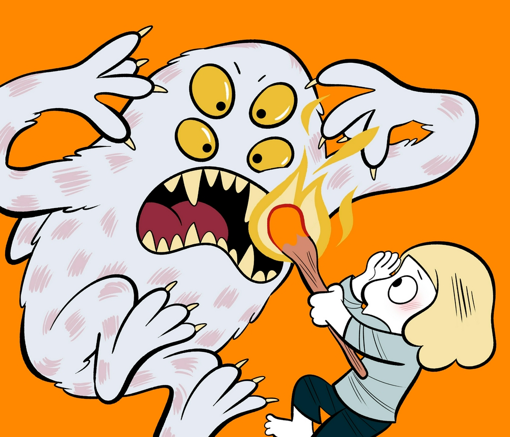 La créature telle que tu la dessines révèle tes peurs : yeux et crochets d'araignée, aileron de requin, allure d'orang-outan.