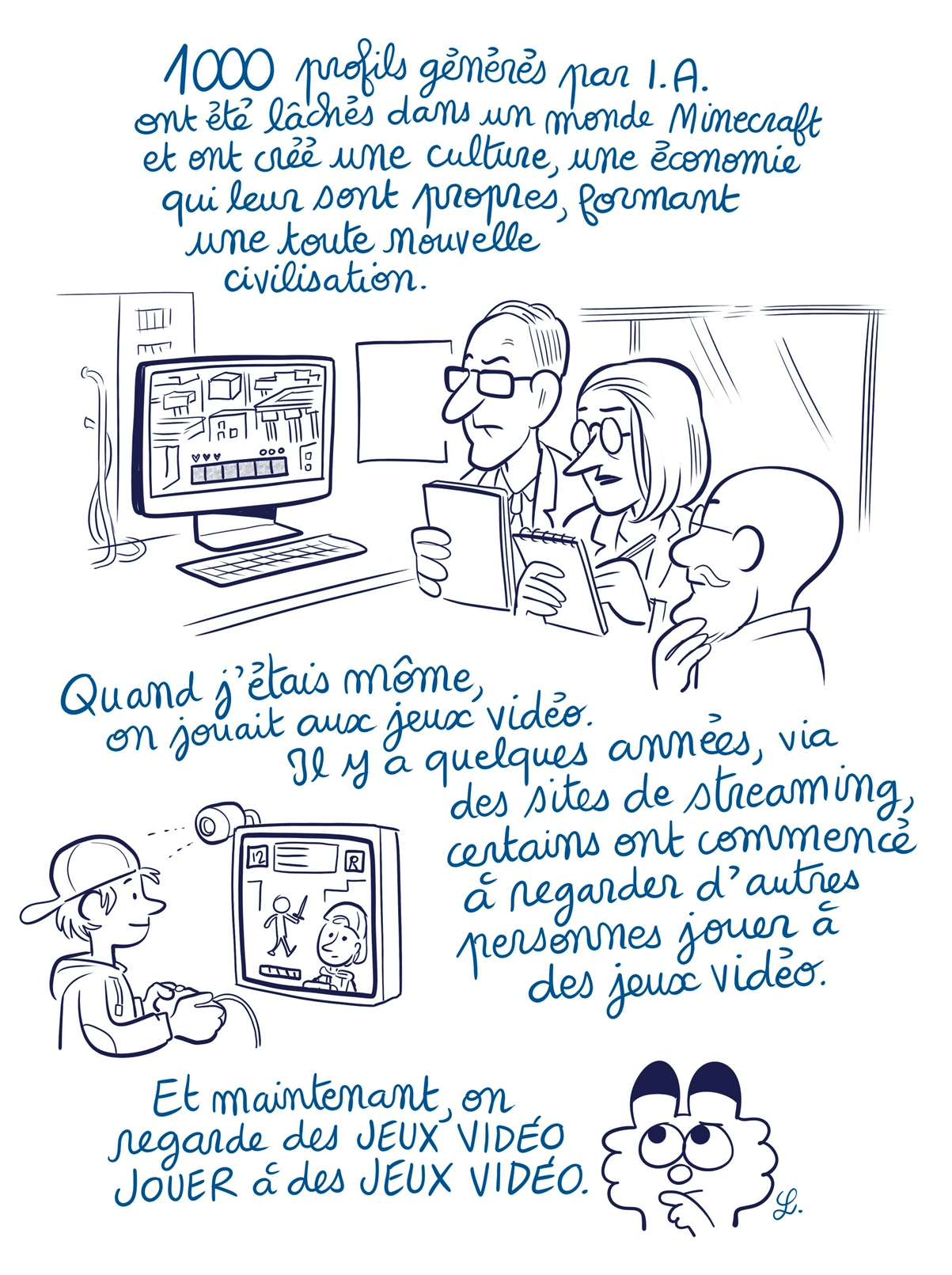 Hier j'ai vu qu'à partir de quelques photos, une IA a recréé Super Mario...... Je veux dire, y a des maladies dans le monde qu'on pourrait sans doute guérir avec de l'IA, mais non, on lui fait faire ça. Fuck, je me sens vieux d'un coup.