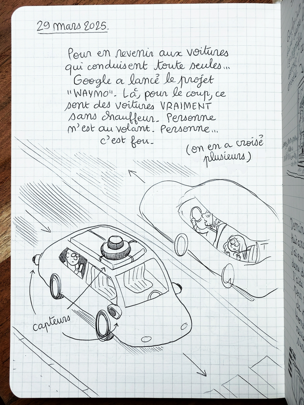 Ah ! Les taxis sans chauffeur 🤪 Mélaka en avait parlé ici https://melakarnets.com/2025/08/18/trip-to-la-2/ Ils en avaient trouvé une dont la portière était bloquée ouverte et dont j'adore le "Merci humains !" 🤖