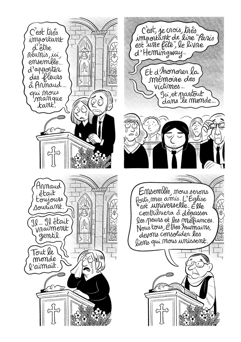 Redevenons sérieux, un curé ne tiendrait jamais ce genre de propos durant des funérailles.