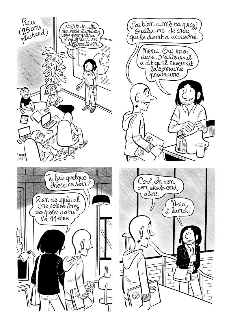 Le personnage semble ainsi être épanoui et efficace dans sa vie professionnelle, chose confirmée en case 2 ;)