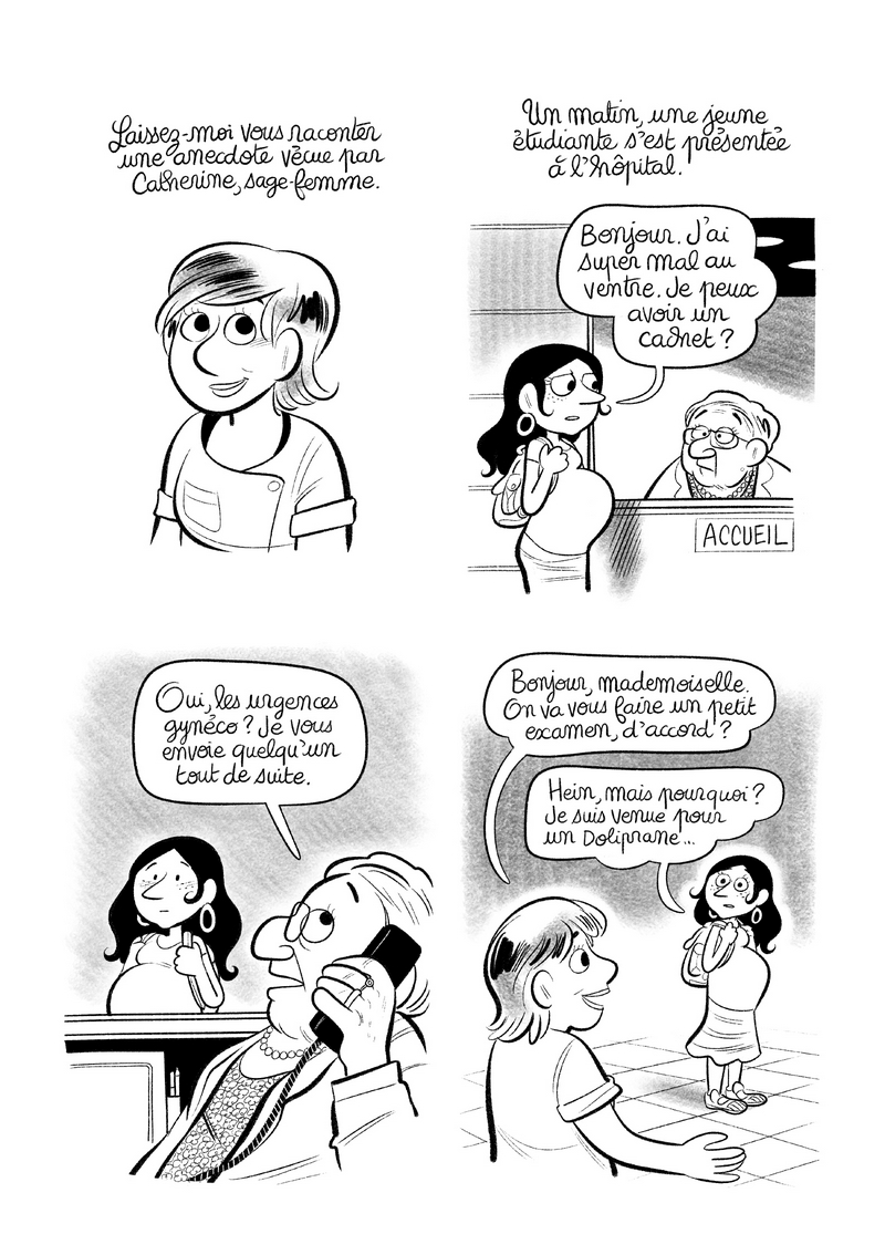 l'anecdote d'une sage-femme qui se trouvait dans une pharmacie où y'a un accueil ?
