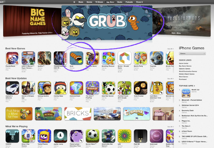 Mais bon, le jeu est énormément téléchargé, bien plus que ce qu'on aurait pu espérer sans mise en avant dans cette bannière de l'Appstore!