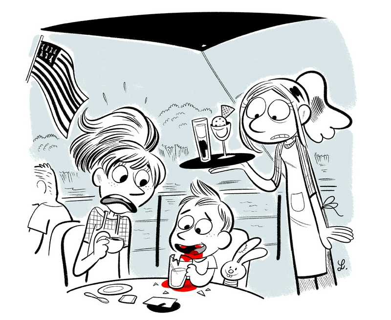 Seul moment un peu tendu, quand un loulou de 3 ans a mordu dans un verre et s'est ouvert la bouche ! Bon, là, j'exagère, sur le dessin (en plus, je n'étais pas là). Apparemment le petit était très courageux et les parents n'ont pas paniqué. 😊