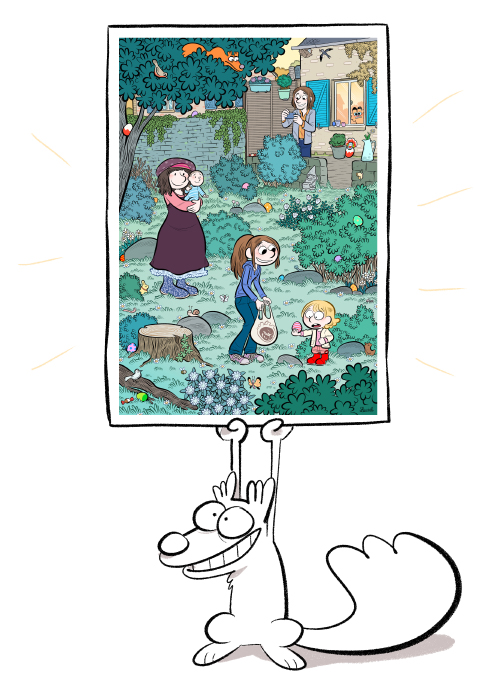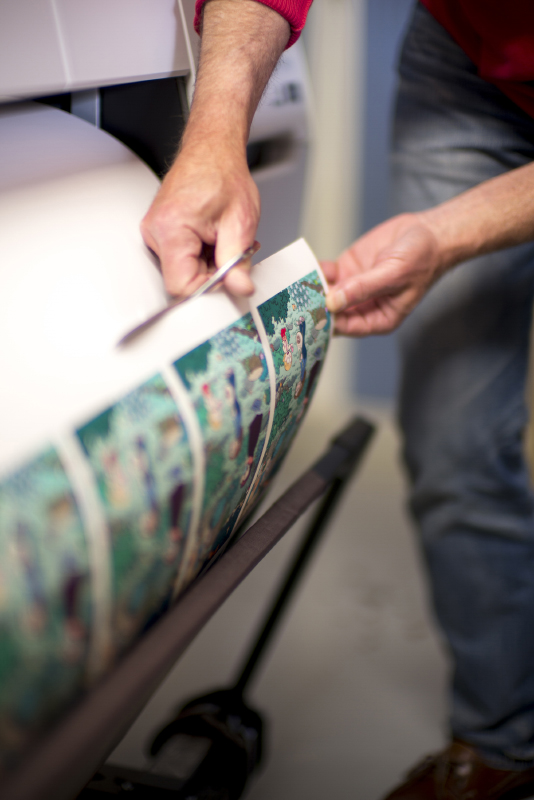 ... puis il a découpé l'immense feuille en plus petites parties avec 4 illustrations.