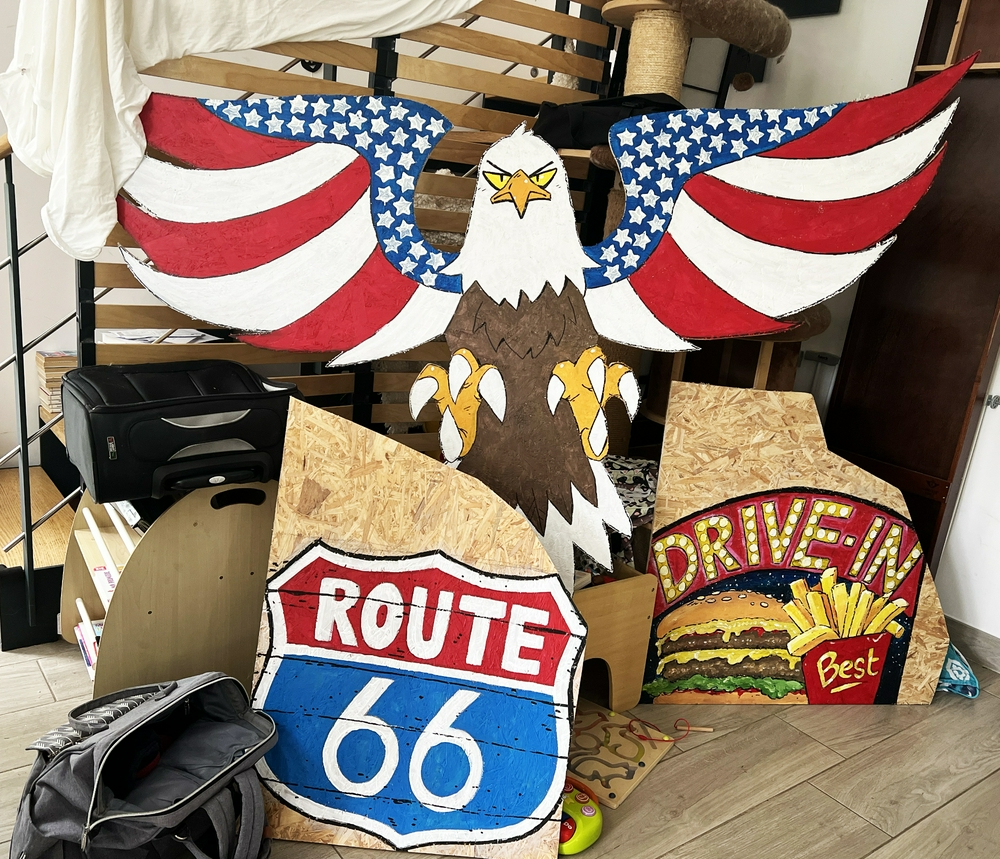 Je confirme, ça fait vraiment USA ! Et l'aigle est vraiment beau. C'est une bonne idée, de lui avoir peint des drapreaux sur les ailes.